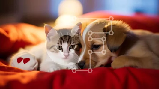 Intra Συλλεκτικό Ξύλινο Παζλ Plywood 4mm - Γάτα και σκύλος με κόκκινα ρούχα στριμωγμένα μαζί Σε Ξύλινο Κουτί - Διαστάσεις: 10x10 cm – 25 κομμάτια