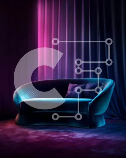 Intra Συλλεκτικό Ξύλινο Παζλ Plywood 4mm - Κομψός μπλε καναπές με εντυπωσιακό ροζ και μωβ φωτισμό Σε Ξύλινο Κουτί - Διαστάσεις Puzzle: 10x10 cm – 25 κομμάτια