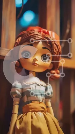 Intra Συλλεκτικό Ξύλινο Παζλ Plywood 4mm - Χαριτωμένη κούκλα με μακριά κόκκινα μαλλιά σε κίτρινο και λευκό ριγέ φόρεμα Σε Ξύλινο Κουτί - Διαστάσεις Puzzle: 10x10 cm – 25 κομμάτια