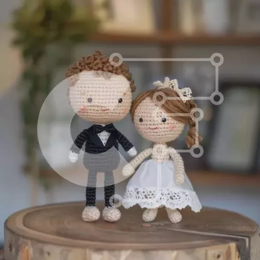 Intra Συλλεκτικό Ξύλινο Παζλ Plywood 4mm - Κροσέ κούκλες νύφης και γαμπρού σε ξύλινο κούτσουρο Σε Ξύλινο Κουτί - Διαστάσεις Puzzle: 10x10 cm – 25 κομμάτια