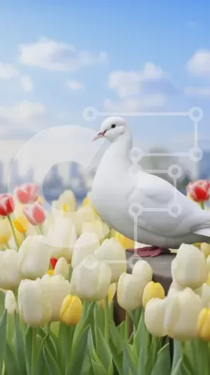 Intra Συλλεκτικό Ξύλινο Παζλ Plywood 4mm - Λευκό Περιστέρι που περιβάλλεται από τουλίπες Σε Ξύλινο Κουτί - Διαστάσεις: 10x10 cm – 25 κομμάτια