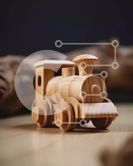 Intra Συλλεκτικό Ξύλινο Παζλ Plywood 4mm - Παιχνιδιάρικη εικόνα ενός ξύλινου τρένου παιχνιδιού σε μια ξύλινη επιφάνεια Σε Ξύλινο Κουτί - Διαστάσεις: 10x10 cm – 25 κομμάτια