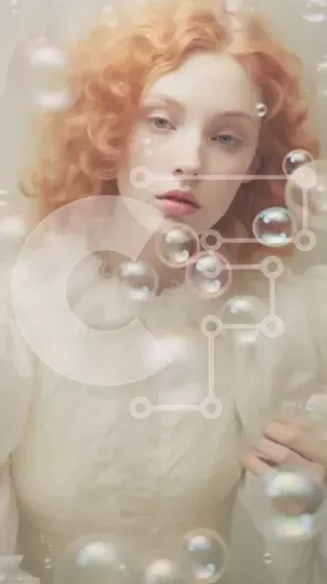 Intra Συλλεκτικό Ξύλινο Παζλ Plywood 4mm - Ονειρική εικόνα μιας γυναίκας με λευκό φόρεμα με κόκκινα μαλλιά που περιβάλλεται από φυσαλίδες Σε Ξύλινο Κουτί - Διαστάσεις Puzzle: 10x10 cm – 25 κομμάτια