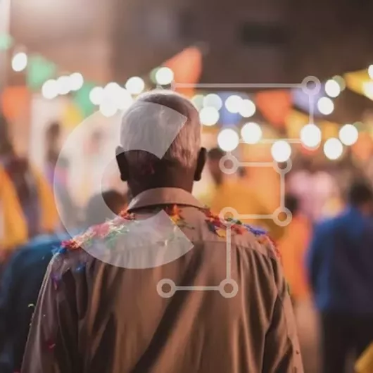 Intra Συλλεκτικό Ξύλινο Παζλ Plywood 4mm - Πολύχρωμος ηλικιωμένος άνδρας σε έναν γεμάτο δρόμο Σε Ξύλινο Κουτί - Διαστάσεις Puzzle: 10x10 cm – 25 κομμάτια