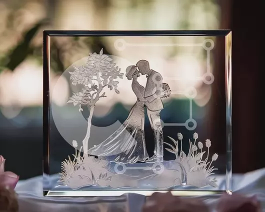 Intra Συλλεκτικό Ξύλινο Παζλ Plywood 4mm - Γυάλινο γλυπτό του ζεύγους που φιλά Σε Ξύλινο Κουτί - Διαστάσεις Puzzle: 10x10 cm – 25 κομμάτια