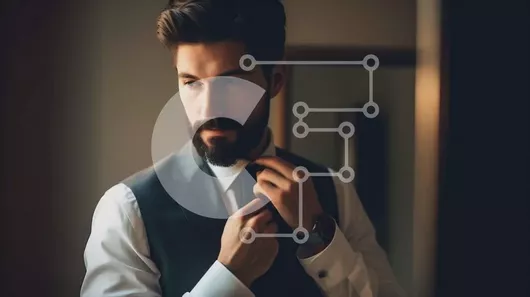 Intra Συλλεκτικό Ξύλινο Παζλ Plywood 4mm - Επιχειρηματίας που ρυθμίζει τη γραβάτα μπροστά από τον καθρέφτη Σε Ξύλινο Κουτί - Διαστάσεις Puzzle: 10x10 cm – 25 κομμάτια