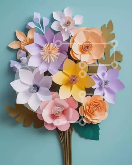 Intra Συλλεκτικό Ξύλινο Παζλ Plywood 4mm - Πολύχρωμο χάρτινο μπουκέτο λουλουδιών σε μπλε φόντο Σε Ξύλινο Κουτί - Διαστάσεις Puzzle: 10x10 cm – 25 κομμάτια