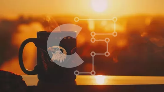 Intra Συλλεκτικό Ξύλινο Παζλ Plywood 4mm - Μαύρη κούπα καφέ με σχέδιο αετού στο ηλιοβασίλεμα Σε Ξύλινο Κουτί - Διαστάσεις: 10x10 cm – 25 κομμάτια