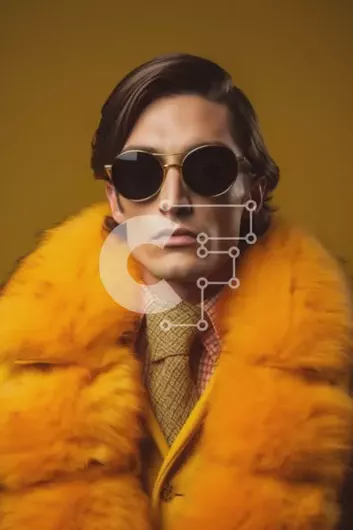 Intra Συλλεκτικό Ξύλινο Παζλ Plywood 4mm - Μοντέρνος άντρας με πορτοκαλί γούνινο παλτό και γυαλιά ηλίου Σε Ξύλινο Κουτί - Διαστάσεις Puzzle: 10x10 cm – 25 κομμάτια