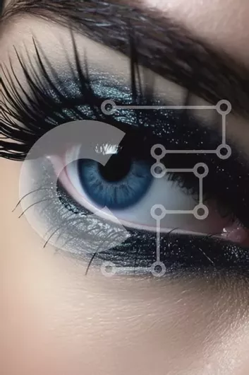 Intra Συλλεκτικό Ξύλινο Παζλ Plywood 4mm - Θλιβερό κοντινό γυναικείο μάτι με μπλε σκιά ματιών και χοντρό eyeliner Σε Ξύλινο Κουτί - Διαστάσεις Puzzle: 10x10 cm – 25 κομμάτια