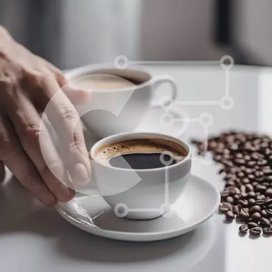 Intra Συλλεκτικό Ξύλινο Παζλ Plywood 4mm - Δύο φλιτζάνια καφέ στο τραπέζι με κόκκους καφέ και χαρτοπετσέτες Σε Ξύλινο Κουτί - Διαστάσεις: 10x10 cm – 25 κομμάτια