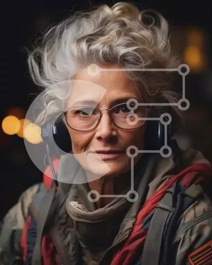 Intra Συλλεκτικό Ξύλινο Παζλ Plywood 4mm - Πορτρέτο της ηλικιωμένης γυναίκας με γυαλιά και ακουστικά Σε Ξύλινο Κουτί - Διαστάσεις Puzzle: 10x10 cm – 25 κομμάτια