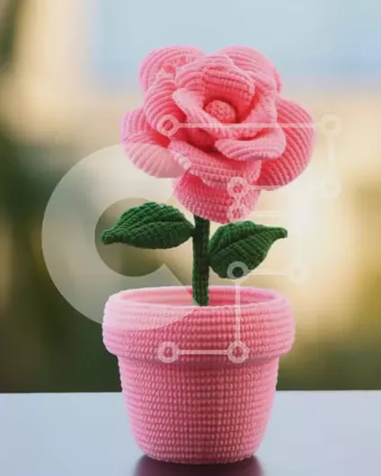 Intra Συλλεκτικό Ξύλινο Παζλ Plywood 4mm - Τοποθέτηση τέχνης με ροζ κροσέ γλάστρα Σε Ξύλινο Κουτί - Διαστάσεις Puzzle: 10x10 cm – 25 κομμάτια