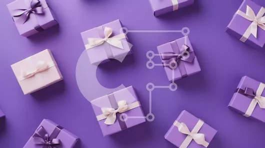 Intra Συλλεκτικό Ξύλινο Παζλ Plywood 4mm - Μωβ κουτιά δώρων σε μωβ φόντο με λευκές κορδέλες και φιόγκους Σε Ξύλινο Κουτί - Διαστάσεις Puzzle: 10x10 cm – 25 κομμάτια
