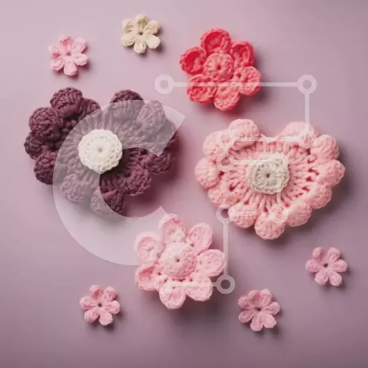 Intra Συλλεκτικό Ξύλινο Παζλ Plywood 4mm - Κροσέ λουλούδια σε σχήμα καρδιάς σε μωβ φόντο Σε Ξύλινο Κουτί - Διαστάσεις Puzzle: 10x10 cm – 25 κομμάτια