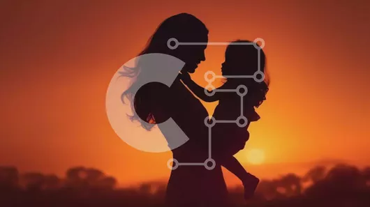 Intra Συλλεκτικό Ξύλινο Παζλ Plywood 4mm - Σιλουέτα μητέρας και παιδιού στο ηλιοβασίλεμα Σε Ξύλινο Κουτί - Διαστάσεις Puzzle: 10x10 cm – 25 κομμάτια