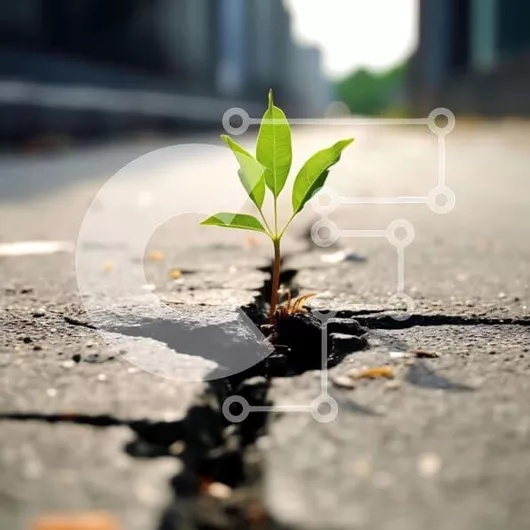 Intra Συλλεκτικό Ξύλινο Παζλ Plywood 4mm - Πράσινο φυτό που αναπτύσσεται από τη ρωγμή στο δρόμο Σε Ξύλινο Κουτί - Διαστάσεις: 10x10 cm – 25 κομμάτια