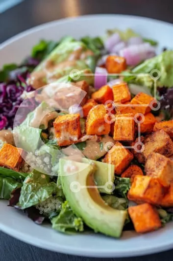 Intra Συλλεκτικό Ξύλινο Παζλ Plywood 4mm - Φρέσκια και πολύχρωμη σαλάτα με ψητές γλυκοπατάτες Σε Ξύλινο Κουτί - Διαστάσεις: 10x10 cm – 25 κομμάτια
