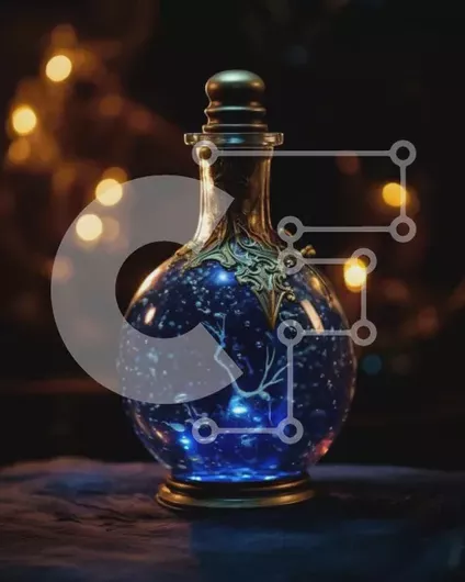 Intra Συλλεκτικό Ξύλινο Παζλ Plywood 4mm - Εκπληκτική εικόνα ενός μπλε μπουκαλιού με λαμπερό υγρό μέσα Σε Ξύλινο Κουτί - Διαστάσεις: 10x10 cm – 25 κομμάτια