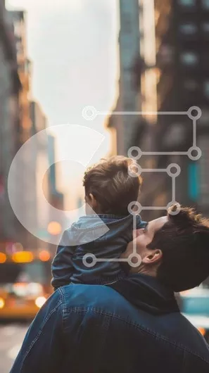 Intra Συλλεκτικό Ξύλινο Παζλ Plywood 4mm - Πατέρας και παιδί που περπατούν στην πόλη Σε Ξύλινο Κουτί - Διαστάσεις Puzzle: 10x10 cm – 25 κομμάτια