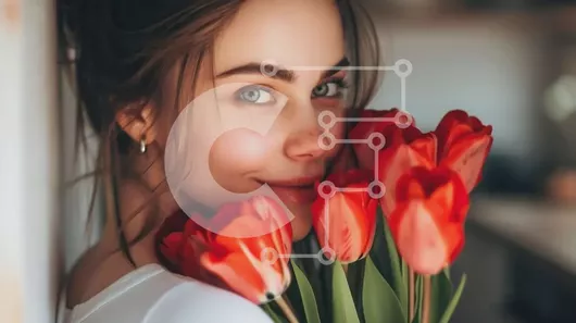 Intra Συλλεκτικό Ξύλινο Παζλ Plywood 4mm - Ευτυχισμένη νεαρή γυναίκα με τις κόκκινες τουλίπες Σε Ξύλινο Κουτί - Διαστάσεις Puzzle: 10x10 cm – 25 κομμάτια