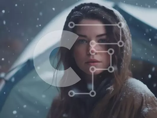 Intra Συλλεκτικό Ξύλινο Παζλ Plywood 4mm - Σοβαρή νεαρή γυναίκα με καφέ μπουφάν με κουκούλα στο χιόνι Σε Ξύλινο Κουτί - Διαστάσεις Puzzle: 10x10 cm – 25 κομμάτια