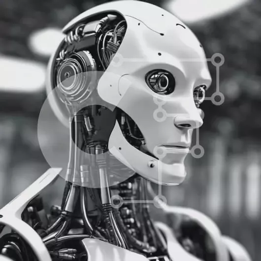 Intra Συλλεκτικό Ξύλινο Παζλ Plywood 4mm - Κοντινό πλάνο ρομπότ τεχνητής νοημοσύνης (AI) με κεκλιμένο κεφάλι Σε Ξύλινο Κουτί - Διαστάσεις Puzzle: 10x10 cm – 25 κομμάτια