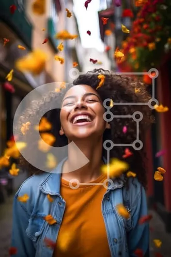Intra Συλλεκτικό Ξύλινο Παζλ Plywood 4mm - Όμορφη εικόνα μιας χαμογελαστής γυναίκας σε λιθόστρωτο δρόμο με φθινοπωρινά φύλλα Σε Ξύλινο Κουτί - Διαστάσεις Puzzle: 10x10 cm – 25 κομμάτια